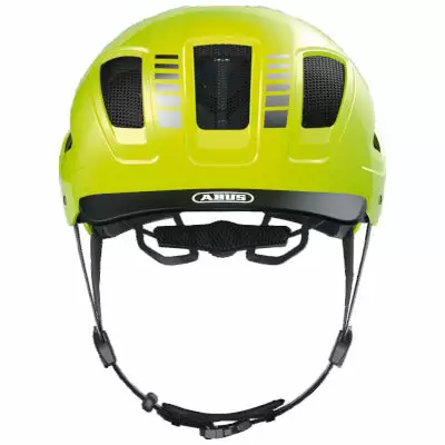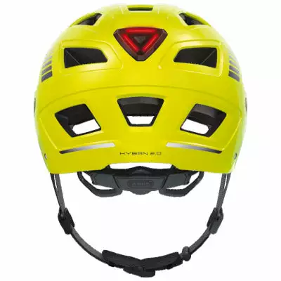 - Version avec éclairages avant et arrière : le casque vélo lumineux Abus Hyban 2.0 LED jaune fluo