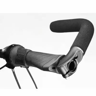 Chacune des cornes est constituée d’une tige d’aluminium enveloppée d’une mousse qui apporte une prise en main confortable. La paire a un poids global d’environ 360 grammes. Les bar-ends se fixent aux extrémités du guidon à l’aide de colliers en aluminium. Ces colliers s’adaptent pour un tube de cintre de 22.2 mm de diamètre.