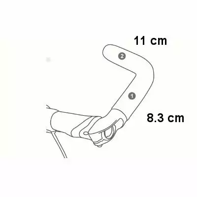 Ces deux cornes tournent sur elles-même et sont positionnables sur 360°. Ils sont aussi inclinables d’un angle de 0° à 15° relativement au guidon. Cet accessoire offre 2 positions alternatives en plus sur le guidon pour les mains : sur la partie latérale des cornes ou au niveau de l’embout. La longueur des cornes est de 210 mm environ.