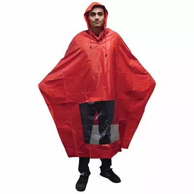 La couleur rouge du poncho vous garantit une très bonne visibilité, non-négligeable les jours de pluie où la luminosité est plus faible. Fabriqué en PVC, il est totalement imperméable.