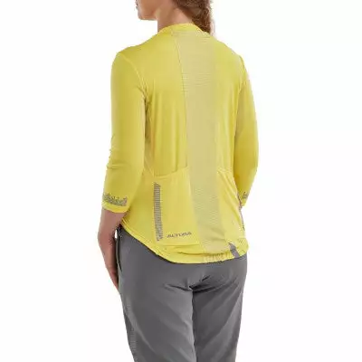 La coupe droite et décontractée ainsi que la couleur jaune offrent un style très tendance à ce maillot. Les manches trois quarts donnent un côté plus habillé au maillot et vous permettent de porter le maillot aussi bien sur le vélo qu’à pied ou en ville. Ce maillot est proposé de la taille S à la taille L.