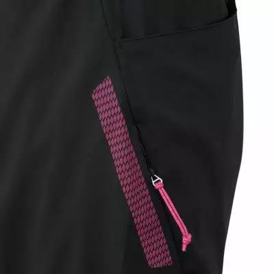 Si le short est noir et plutôt sobre, les empiècements réfléchissants, de part et d’autre, ainsi que le logo sont roses et vous apportent une touche de couleur. Ces dessins roses donnent du style au short et vous donnent plus de visibilité la nuit.